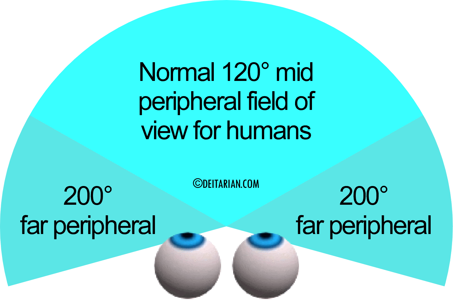 Normal 120° mid, and 200° far peripheral fields of view for humans.