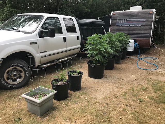 So, the point about all of this should be clear, it’s all part of Gods’ Design and at least in some way answers the question about why He Chose this location for us and our home on wheels. The spot even came with four nice specimens of “Blue Cherry Gelato” which we grew to 7′ tall maturity and used to make about 250 grams of RSO! (The four on the right are the Cannabis plants we were given “out of the blue” 2 days after arriving.)