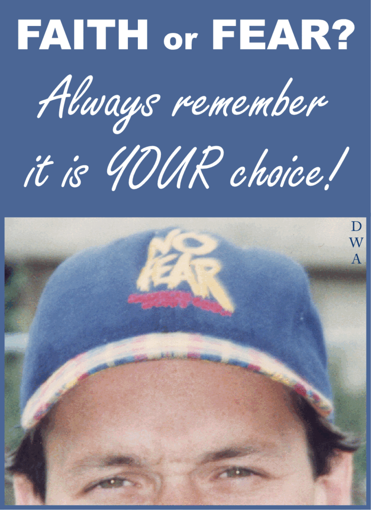 My all time favorites were from the company that marketed the “No Fear” brand back in the 80s. I liked the motto and “faithfully” wore their shirts and hats for about a decade. Little did I understand then, that True faith was really the only requirement to be completely free of fear, or at least for the most part since some fear is generally natural and healthy. (There’s a rather good post about that HERE)
